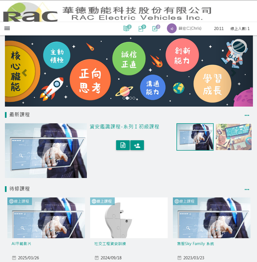 建構數位學習平台,提供自主學習機會,內建四大分類,陸續建置,提供同仁多元學習機會。