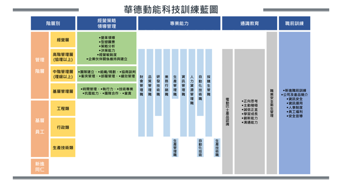 依據公司策略與職能分析,規劃分層分級且系統化的訓練課程,確保員工在各自專業領域持續精進,並能因應產業變化與組織需求,提升整體競爭力。